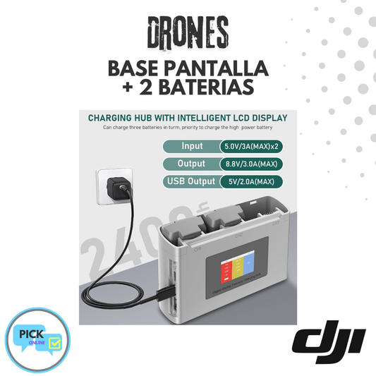 BASE CON PANTALLA + 2 BATERIAS PARA DRON DJI: DJI MINI 2 SE, DJI MINI SE, DJI MINI 2 Y DJI MINI 4k
